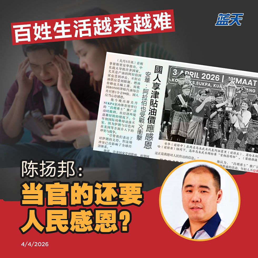陈扬邦指出,这群当官的人在当反对党时,是如何炮轰国阵,如今当了官,却反过来要炮轰人民,要人民感恩。