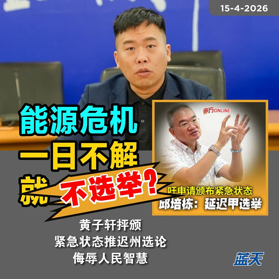 能源危机一日不解就不选举?黄子轩抨颁紧急状态推迟州选论侮辱人民智慧